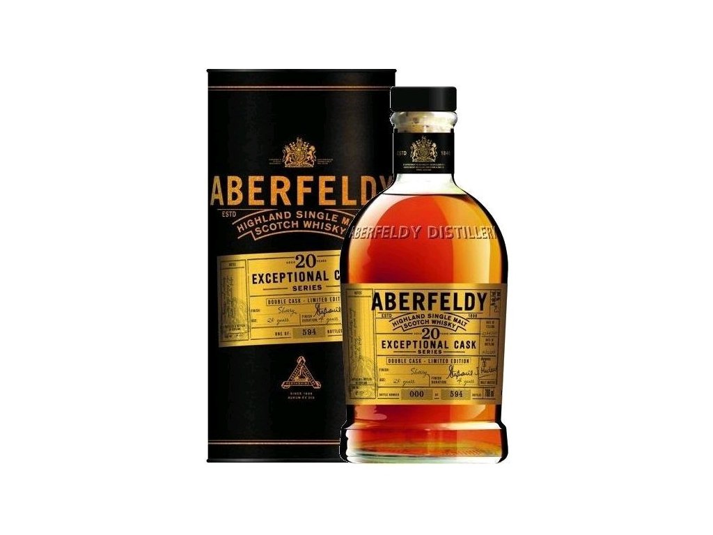 Limitovaná edice z produkce destilérky Aberfeldy. Tato vyjímečná 20 letá whisky byla vyrobena v malé šarži o počtu 594 lahví pro celý svět. To znamená, že whisky byla vybrána z nejlepší Aberfeldy sudů, které osobě vybral Master Blender a Malt Master Stephanie MacLeod. Část výjimečné sudové série mimořádných vydání v malých sériích speciálně vybraných Malt Masterem. Vzácný 20letý single malt, dokončený v sudech Sauternes, který dodává sladké tóny medu a zlatého sirupu vyvážené citrusovou kůrou, broskvemi a mandlemi. V této whisky se můžete pocítit aroma jemné koření, které je snoubené s medem. V chuti lze podthnout náznak šťavnatých hroznů, květinové vřesy a závěrem pražený kokos. Palírna Aberfeldy byla založena společností John Dewar & Sons Ltd a whisky z ní je dodnes hlavní součástí míchaných whisky značky Dewar's. Jako rok založení bývá uváděn 1896, kdy Dewarové koupili starou palírnu Pitilie a začali s přestavbou, nebo 1898 (který je i na etiketách Aberfeldy), kdy byla palírna uvedena do provozu. V r. 1973 prošla palírna rozsáhlou rekonstrukcí. Dnes palírna patří společnosti Bacardi. Většina produkce jde do míchaných whisky, jako sladová se dostává na trh hlavně z nezávislých stáčíren.Doplňkové parametry