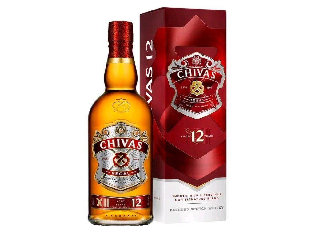 Dvanáct let stará whisky Chivas Regal je výrazem jedinečné tradice, která pokračuje bez přerušení od doby, kdy bratři Chivasové poprvé světu představili tuto bohatou, jemnou skotskou whisky. Srdcem této dvanáctileté prémiové whisky jsou vyzrálé, lahodné single malts harmonicky sladěné s nejkvalitnějšími grain z celého Skotska. Společnost Chivas Brothers disponuje největší zásobou zrajících whisky, z nichž čerpá pro dosažení stále stejně jemné, plné, lehce ovocné chuti Chivas Regal. Pije se nejen čistá, ale je take bází luxusních variant klasických koktejlů postavených na whisky. Barva: zářivá, teplá, jantarová Aroma: perfektně vyvážené, příměs divokých bylin, vřesu, medu a sadového ovoce Chuť: na patře kulatá a smetanová, bohatá chuť zralých, medem slazených jablek (tóny vanilky, lískových ořechů a karamelu) Dokončení: dlouhý a jemný závěrDoplňkové parametry