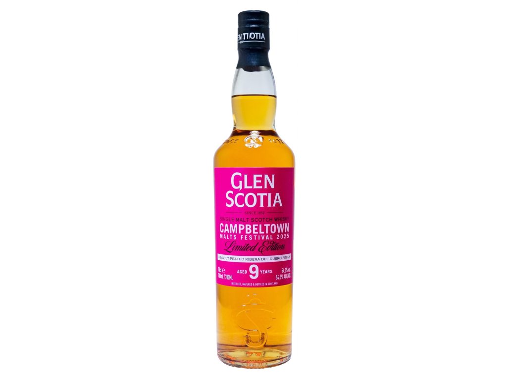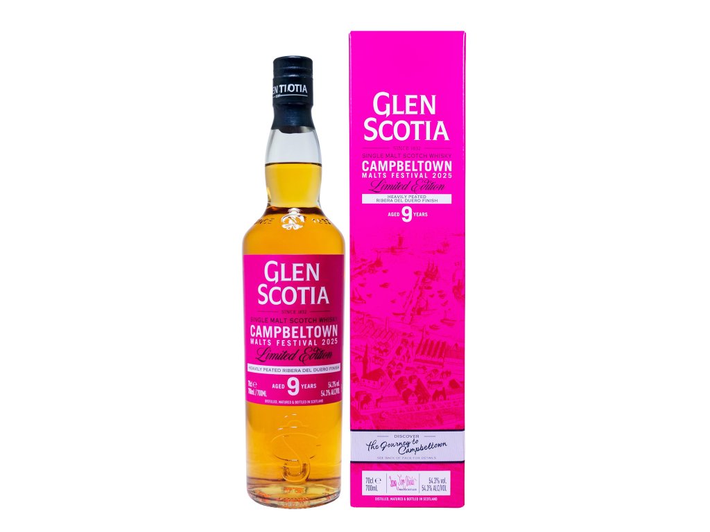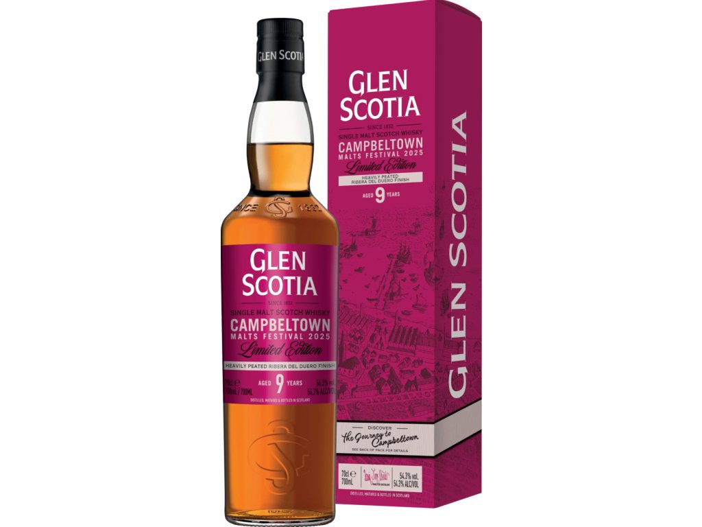 Popis: Festivalová edice k Campbeltown Malts Festival 2025 postavená na výrazně rašelinovém destilátu z Glen Scotia. Základ po 1st fill bourbonu drží vanilkovo-krémovou páteř a „maritime“ charakter Campbeltownu, zatímco krátký finiš v Ribera del Duero sudech přidává tmavé ovoce, tříslovinu a sušší, vínovější doznívání.
