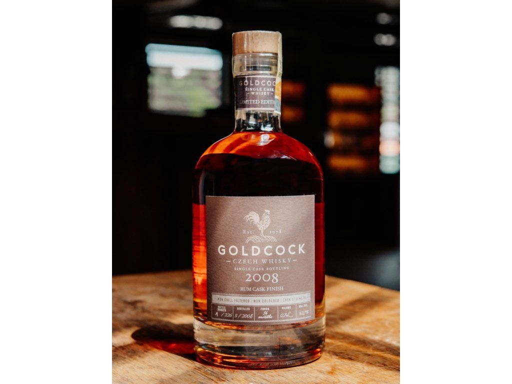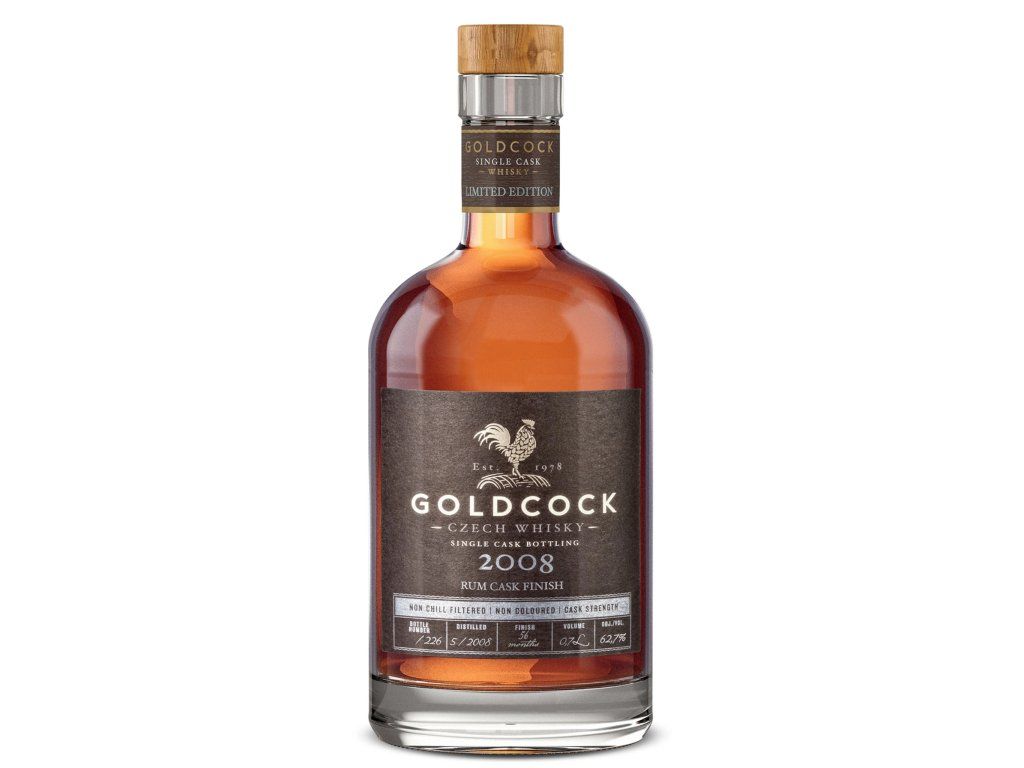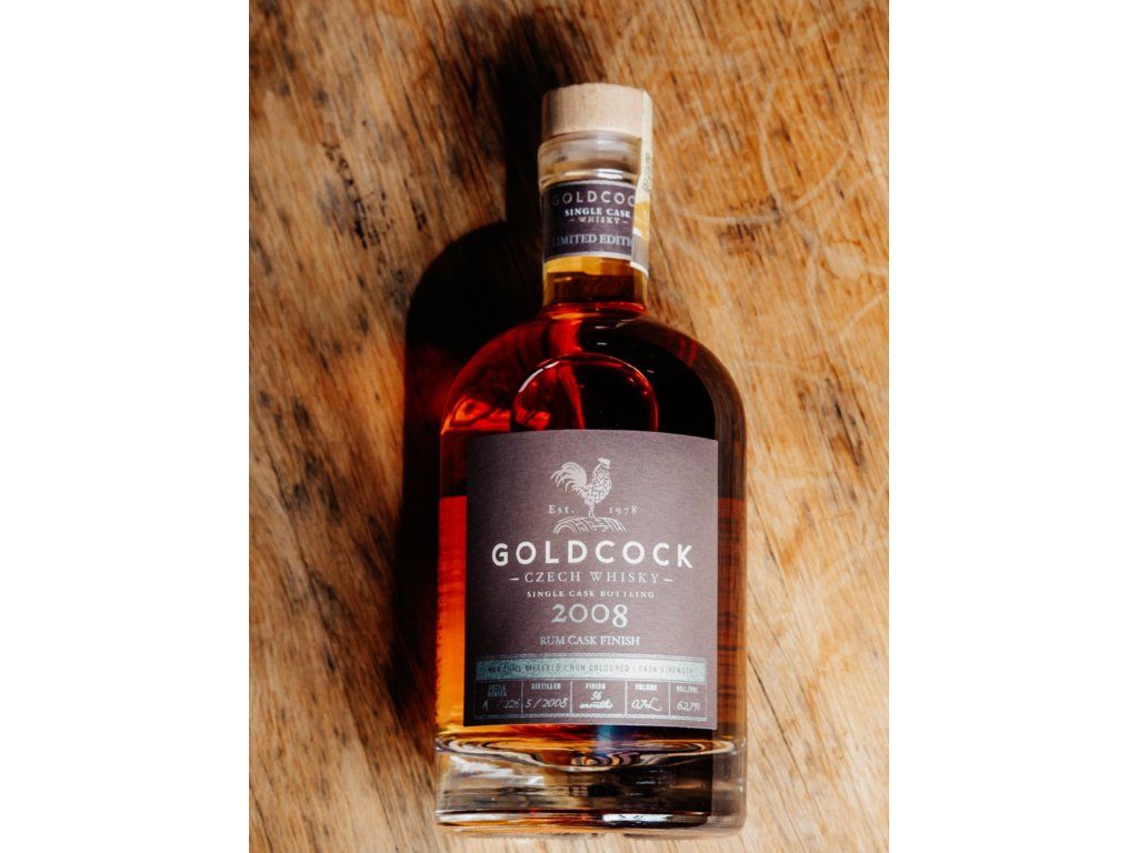 GOLDCOCK z roku 2008, který podruhé dozrával v sudu po rumu. Tentokrát ovšem téměř pět let, přesně tedy 56 měsíců. Z toho třetinu času ležela whisky v sudu z amerického bílého dubu po rumu z Jamajky.