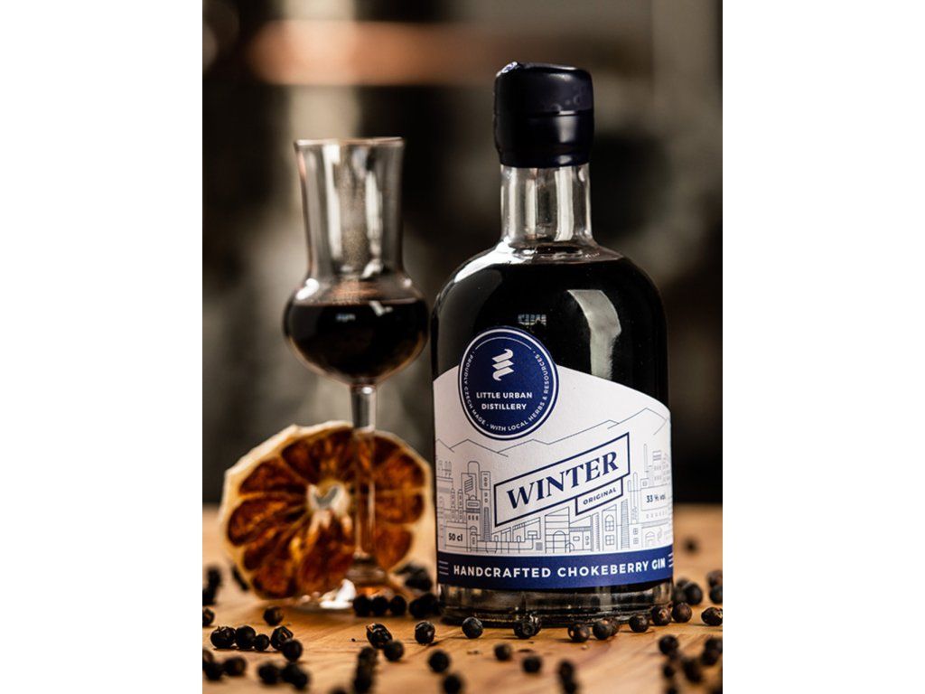 Jedinečný Little Urban Winter Gin je likér vyrobený z London Dry Ginu, ve kterém se macerovali aronie (černé jeřabiny).