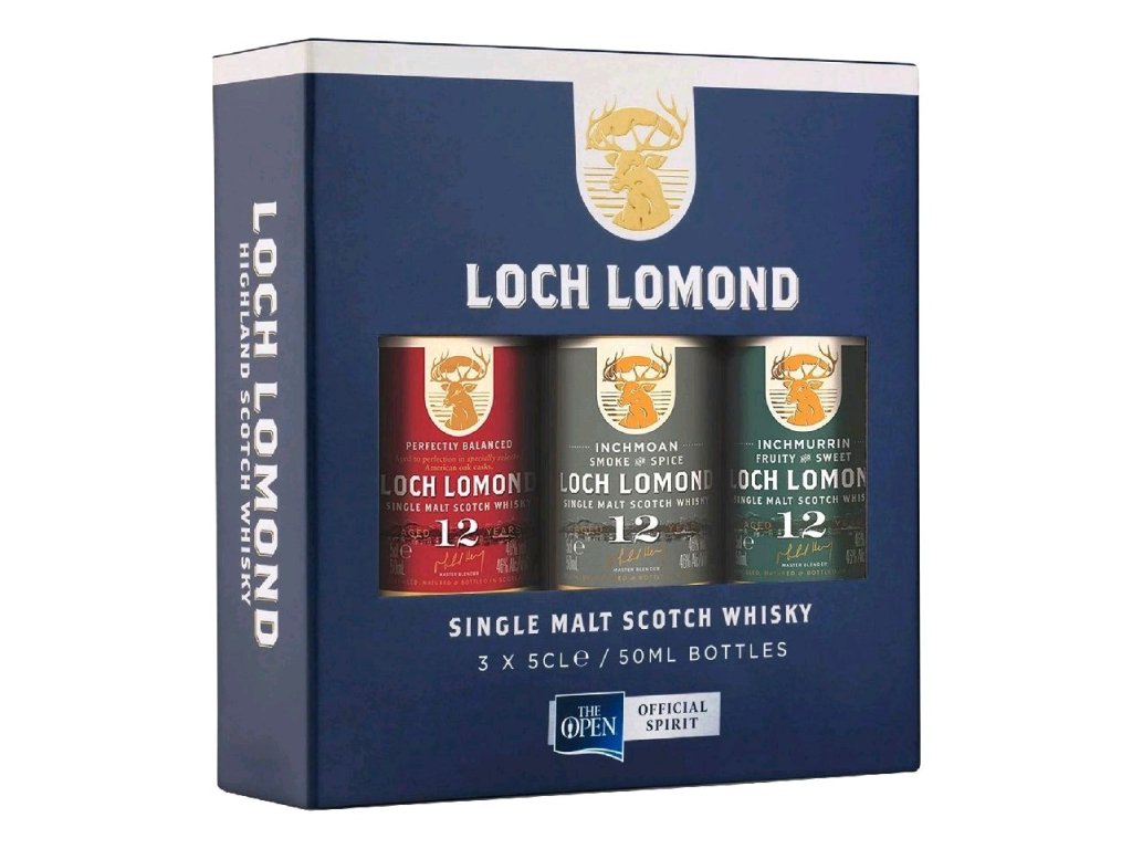Ochutnávkový set obsahující 3 miniatury se třemi různými druhy 12-leté single malt whisky ze skotské destilérky Loch Lomond. Zabalené v decentní dárkové krabičce. V setu se nacházejí 3 miniatury o objemu 0,05 l: ¦ Loch Lomond Inchmoan Single Malt Scotch Whisky 12 let (kouřová a kořeněná) ¦ Loch Lomond Single Malt Scotch Whisky 12 let (perfektně vyvážená) ¦ Loch Lomond Inchmurin Single Malt Scotch Whisky 12 let (ovocná a sladká)Doplňkové parametry