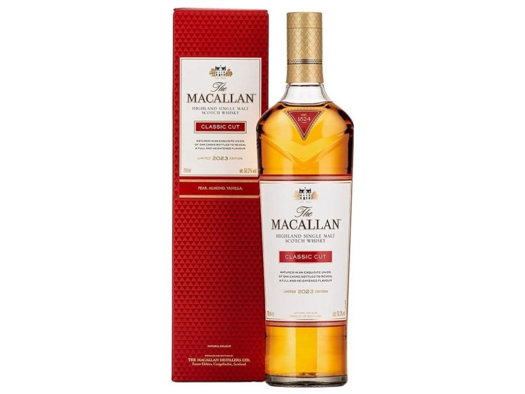 Macallan Classic Cut je edice limitované výroční série, která oslavuje závazek a výjimečnost, vytváří whisky s jedinečným charakterem. Výrobce whisky Steven Bremner zvolil pro tuto edici optimální sílu, aby dokonale předvedl ovocné chutě. Edice 2023 využívá ke skladování kombinaci ex-bourbonových sudů a také sudů z dubu sherry. Barva: světle zlatá. Aroma: elegantní, zralé hrušky, květ černého bezu, vanilkové tóny. Chuť: sladká, krémová, vanilka, citrony, dub. Závěr: dlouhotrvající, nasládlý, dub, sušenka. Palírna Macallan leží v srdci tradičního regionu skotské whisky, ve Speyside, na panství Easter Elchies v hrabství Moray na severovýchodě Skotska. Obklopena zelenými kopci, úrodnými údolími a hlubokými roklemi. Založena byla Alexandrem Reidem v roce 1824, její kořeny však sahají mnohem hlouběji, a to až do roku 1500. Okolo roku 1700 sem horalé vodili svůj dobytek po nedaleké stezce podél řeky Spey a když se zastavili, místní farmář jim v souladu s horalskou tradicí nabídl na rozloučenou sklenku místně destilované „aqua vitae", ve skotské gaelštině „usquebaugh", aby se posilnili na cestu. V roce 1543 zdědil panství kapitán John Grant a právě on je představitelem samotné podstaty značky Macallan. V roce 1892 palírnu přestavěl Roderick Kemp a v držení rodiny Kempových byla do roku 1996. V roce 1968 se palírna stala akciovou společností. Palírna Macallan je známá těmi nejmenšími měděnými destilačními kotly široko daleko s kapacitou 3 900 litrů. Že jde o opravdový unikát dokazuje i fakt, že se dostaly až na skotskou 10librovou bankovku. Kotlů má dnes palírna Macallan čtrnáct a právě jim vděčí za charakteristicky bohatou, ovocnou chuť whisky.Doplňkové parametry