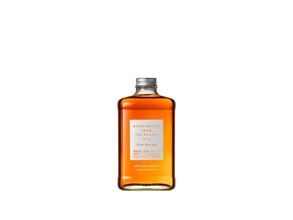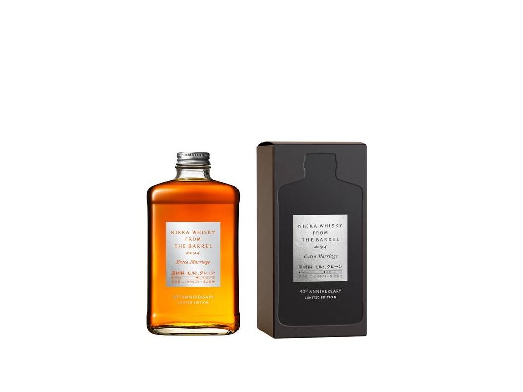 V roce 1985 uvedla společnost Nikka Whisky na trh odvážnou whisky balenou do malé hranaté láhve s názvem Nikka From the Barrel. Master blender Shigeo Sato vytvořil bohatou whisky, jejíž charakter podtrhl minimalistický styl grafického designéra Taku Satoha. O 40 let později je z ní legenda, kterou stojí za to oslavit. Právě k tomu tato nová whisky vznikla. Nikka From The Barrel Extra Marriage spojuje obilnou whisky z proslulých Coffeyho destilačních kotlů Nikka se sladovými whisky pocházejícími především z palíren Yoichi a Miyagikyo. Posouvá původní From the Barrel ještě dál díky období „marriage“ v sudech, které je dvakrát delší než u originálu. Whisky je představena v původní láhvi s novým elegantním stříbrným štítkem opatřeným nápisem Extra Marriage. Jde o poctu 40 letům jedné z nejvýznamnějších whisky této řady.Buďte první, kdo napíše příspěvek k této položce.